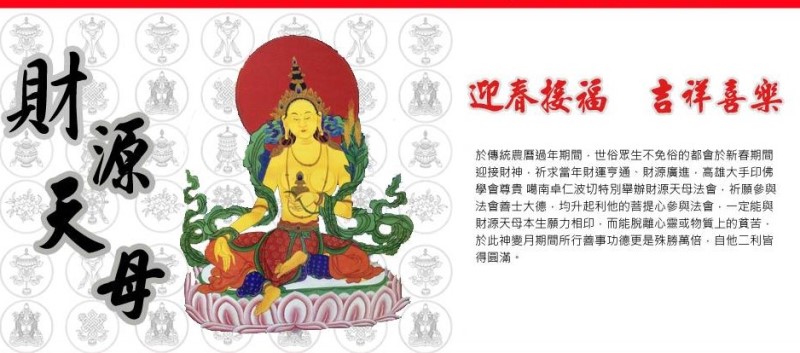 財源天母,密咒部作密與瑜珈密續佛部尊,於六道中專管人道世間之財富,並為五路財神之佛母。
