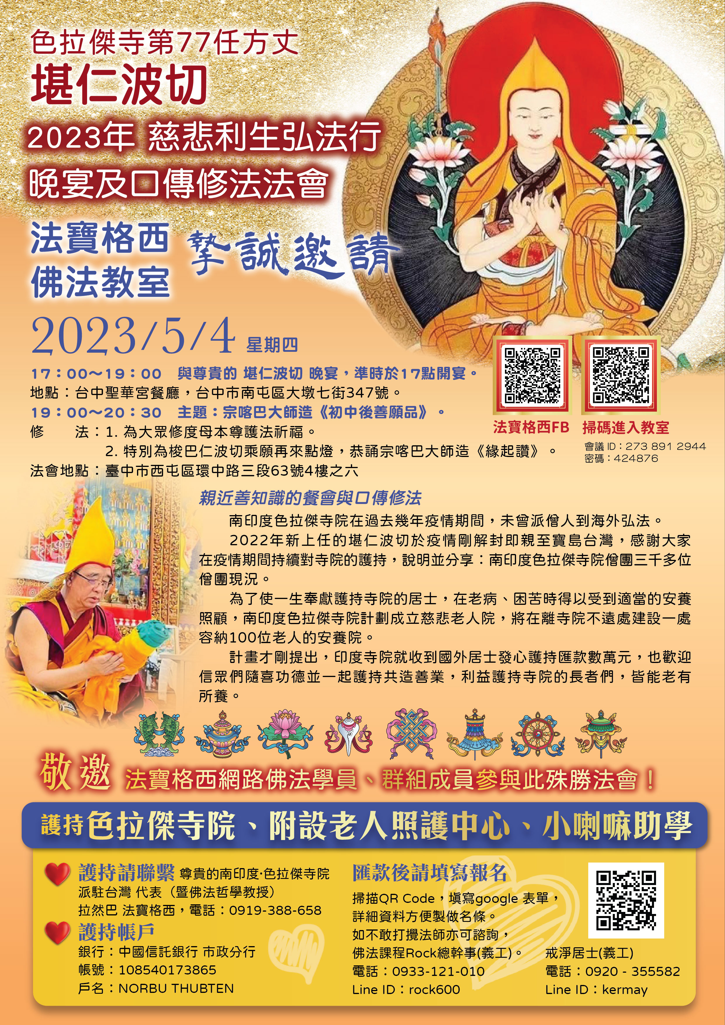 色拉傑寺堪仁波切切搭格西口傳:宗喀巴大師造《初中後善願品》