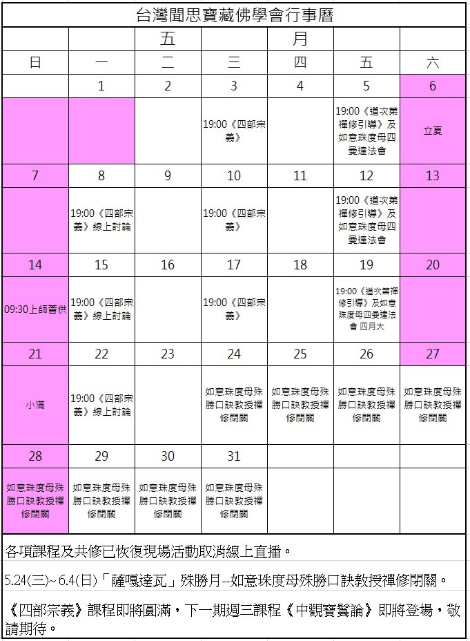 台灣聞思寶藏佛學會2023年5月行事暦
