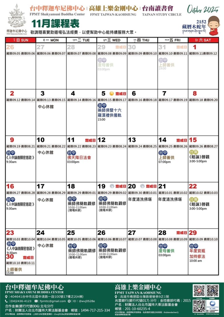台中釋迦牟尼佛中心 高雄上樂金剛中心 台南讀書會